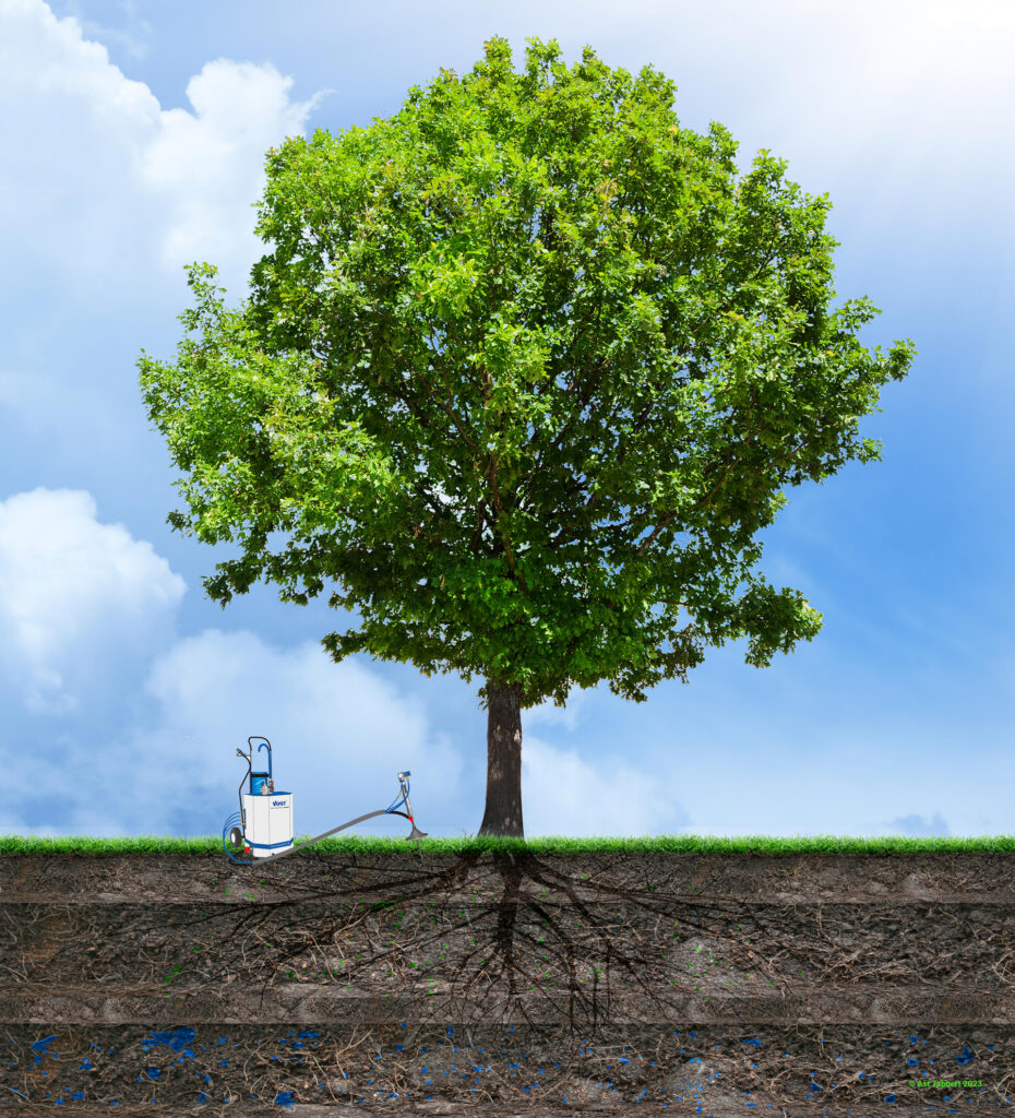 Bäume sind empfindliche Lebewesen. Das gilt für den sichtbaren Teil eines Baumes, aber insbesondere auch für den Teil des Baumes, der in der Erde steckt, dem Baum Halt gibt und ihn mit Nährstoffen versorgt, nämlich der Wurzel. Dieser Teil des Baumes ist häufig besonderem Stress ausgeliefert. In Gärten, Parkanlagen und an Straßen leiden Bäume unter einer zunehmenden Versiegelung und Verdichtung der Böden, unter vermehrt auftretenden Dürreperioden und unter Schadstoffen, wie etwa Hundeurin oder Streusalzen im Winter. Mit der Folge, dass die Bäume nicht artgerecht versorgt werden und hungern, Durst oder Atemnot haben. Bäume reagieren darauf mit Stresssymptomen, bilden deutlich weniger Blätter aus und tragen kleinere und weniger Früchte.